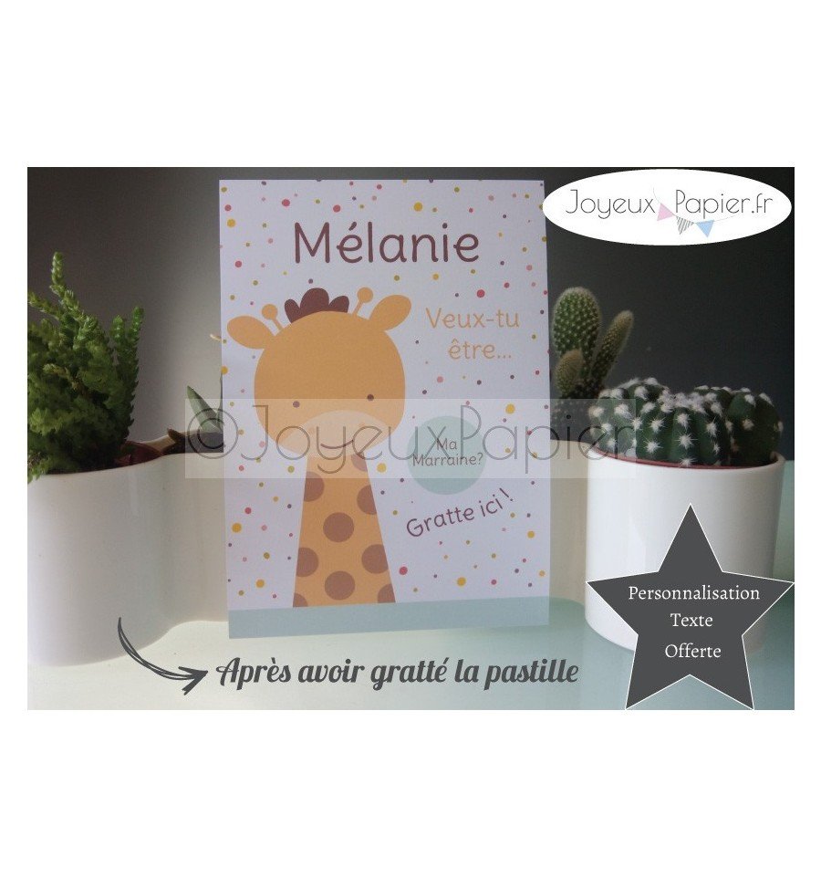 CARTE À GRATTER SURPRISE (MODÈLE Girafe) À PERSONNALISer POUR VOTRE DEMANDE DE PARRAIN OU DE MARRAINE :