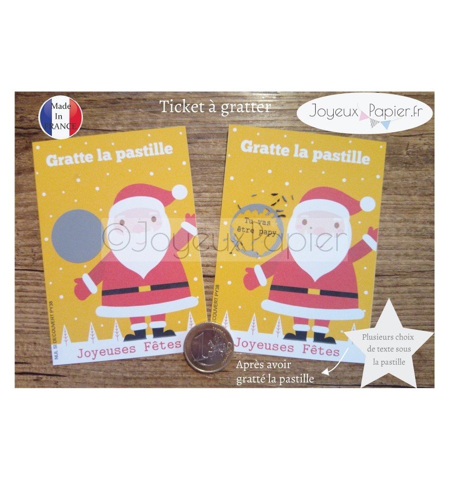 Ticket mini Carte à gratter pour une annonce de grossesse originale : Tu vas être papy ! modèle ours ou père noël