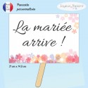 Utilisez cette jolie pancarte lors de votre mariage : La mariée arrive! ou texte de votre choix. Faîtes-la tenir par vos demoiselles ou garçon d'honneur!